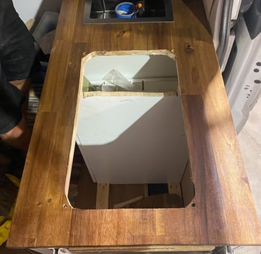 4. Cut openings: Mark and cut out space for the sink and stove (follow the templates if included).